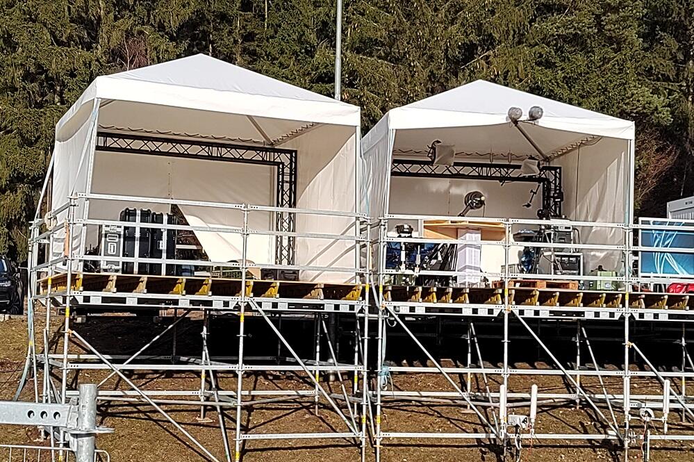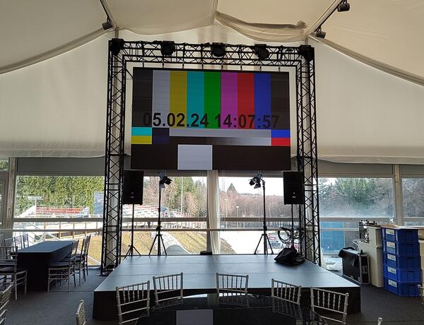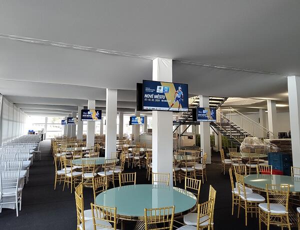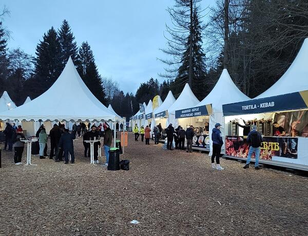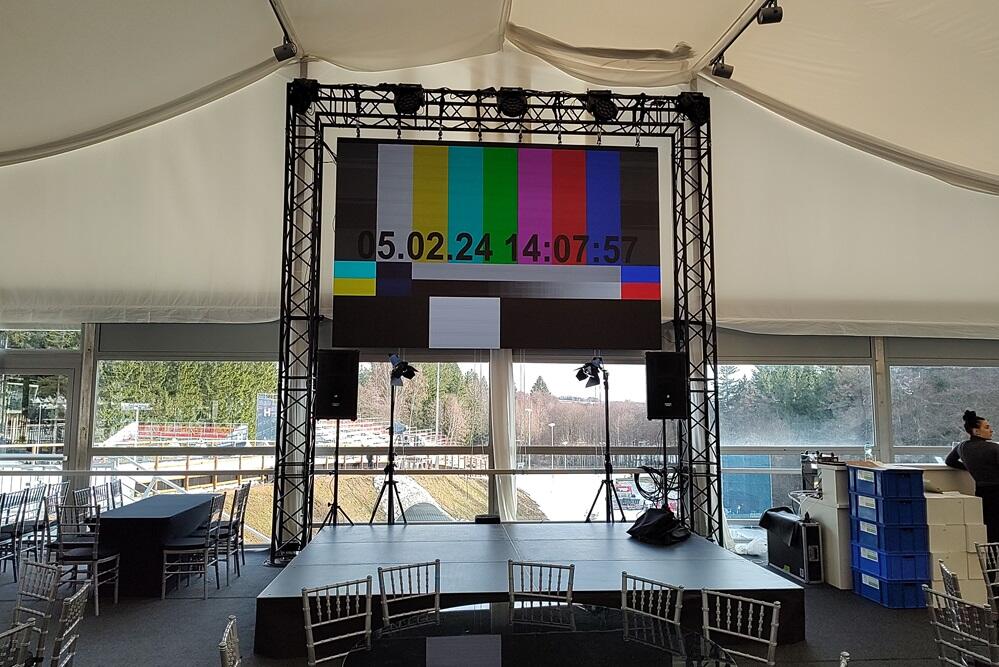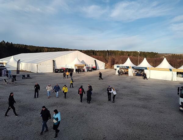 Wir haben insgesamt 3 große Zelte für die Organisatoren des Rennens als Einrichtungen für Besucher, Freiwillige und den offiziellen Merchandise-Shop zur Verfügung gestellt. Über 6 Dutzend 5x5 Meter große Pagodenzelte und 20 Scherenzelte dienten als Tore zum Veranstaltungsort, als Backstage für Standbetreiber oder Rennveranstalter. Fast 450 m2 LED-Wände wurden auf dem gesamten Veranstaltungsgelände an jedem Stand angebracht. Wir verlegten fast einen Quadratkilometer Teppich in den Zelten und bauten 200 Meter Octanorm-Trennwände. Wir verkabelten über 30 Fernsehgeräte und 200 Lampen und statteten die Zelte mit Dutzenden von Möbeln aus.
